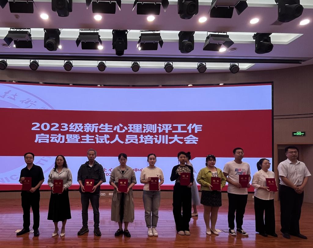培训会上,首先由学生处副处长耿丽就2023级新生心理测评工作进行了动员讲话,对新生辅导员、班主任以及心理委员开展测评工作提出要求,强调了心理测评对于每个新生的积极作用和心理普查作为一项基础心理工作的重要性,以及心理健康工作对学校稳定的重要意义;接着,学工部部长、学生处处长郝军为2023年二级学院“阳光心晴工作站站长”颁发聘书并宣布2023级心理测评工作启动;最后,心理咨询中心柳林老师对本次测评工作做了详细部署,顾灵达老师对心理测评系统操作流程做了具体介绍,条理清晰地讲解了测评具体操作及需要注意的事项。