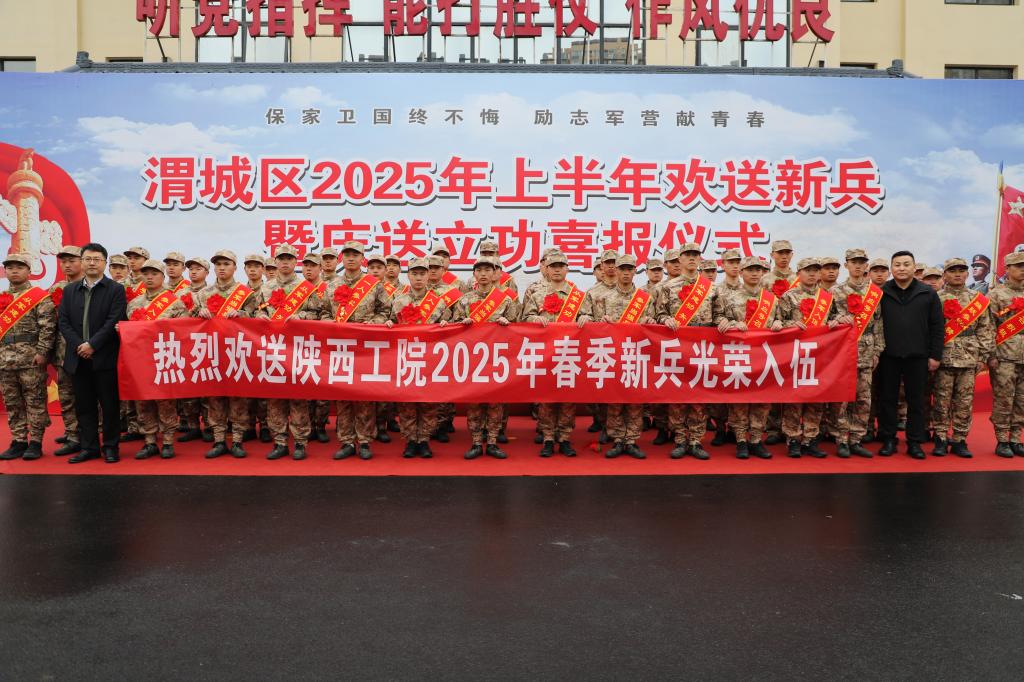 阳春三月送新兵,扬帆起航踏征程。我校53名学生顺利通过咸阳市渭城区人民政府征兵办公室审批应征入伍。3月14日下午,53名应征入伍学生在渭城区武装部操场集中参加咸阳市渭城区2025年春季新兵入伍欢送仪式。我校学生处处长兼征兵工作站站长郝军、征兵工作站相关教师、全体应征入伍新兵及新兵家长代表参加欢送仪式。