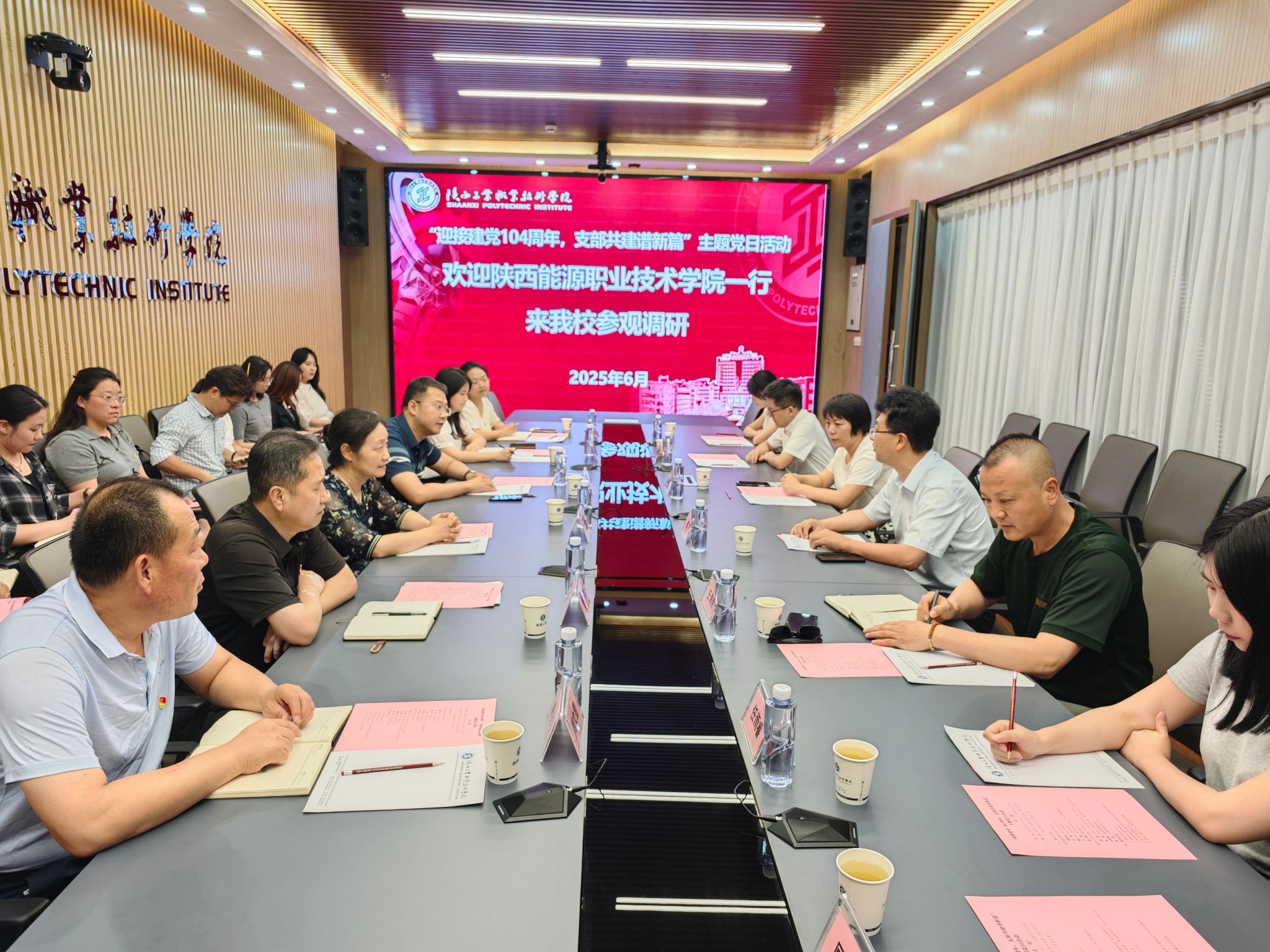为迎接建党104周年,进一步加强基层党组织建设,促进校际交流与合作,6月26日下午,陕西能源职业技术学院机关党总支学管党支部与我校学生工作党总支第一党支部联合开展“迎接建党104周年,支部共建谱新篇”主题党日活动。活动在我校经开校区进行,双方党总支书记、党支部书记及支部委员参加了活动。
