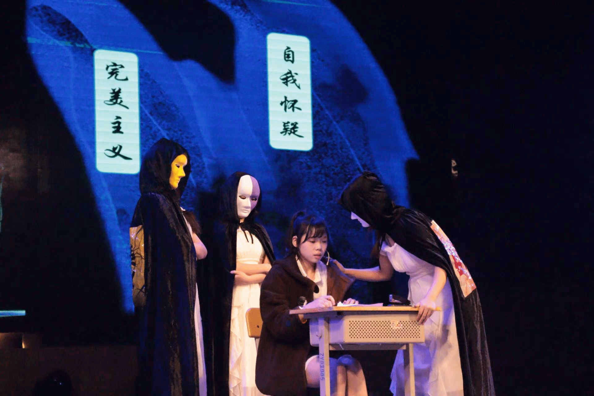 巡演在青春洋溢的氛围中拉开帷幕,五部优秀心理情景剧依次上演,围绕大学生成长过程中的共性心理议题展开了深入探讨。在本次巡演中,我校为咸阳职业技术学院的师生带来了精心创编、屡获好评的心理剧作品《紫色彩虹的呼吸法则》。演员们通过细腻的表演、动人的台词和巧妙的剧情设计,生动演绎了角色内心的矛盾、挣扎与成长,将抽象的心理冲突转化为直观的舞台艺术,引导学生从中获得了感悟与力量。西京学院的《我的"梦","我"的梦》围绕青春追梦主题,激发了广大学子对理想追求的情感共鸣;咸阳职业技术学院的《另一个我》讲述了大一新生从自我怀疑到勇敢突破的成长历程;《追光》聚焦"微笑抑郁"现象,引发观众对情绪健康的深度思考;《在你身后,不止影子》温情演绎了陪伴与支持带来的治愈力量,展现了校园温情的美好图景。