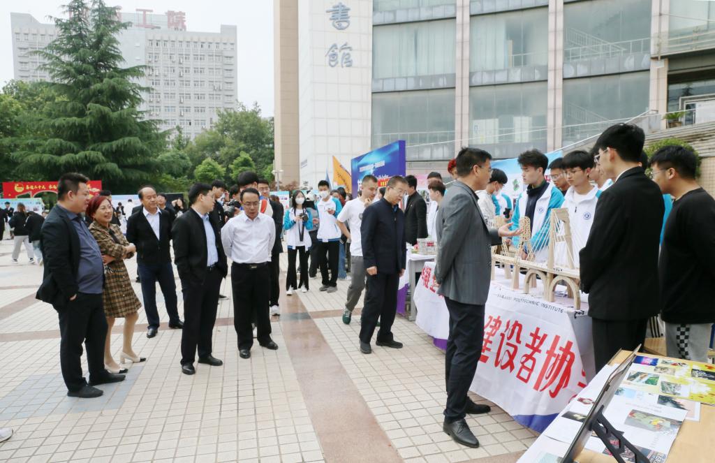 根据学校2022年“职业教育活动周”通知安排,5月9日-10日下午,由校团委主办、社团联合会承办,20余个学生社团共同参与的“技能:让生活更美好”技能展示活动,在图书馆广场举行。此次技能展示活动,聚焦五育并举,按照思想政治类、学术科技类、创新创业类、文化体育类等类型划分展示区域。党委书记惠朝阳,校长刘永亮,党委副书记、纪委书记康强,党委副书记贺天柱、田昊,副校长梅创社、段峻及宣传部、团委等部门负责同志亲身融入学生社团技能展示活动,观看各个学生社团技能展示,体会不一样的社团风采。