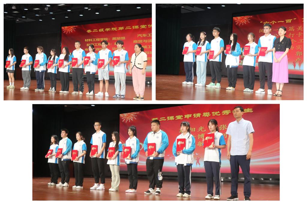 为进一步发挥第二课堂在学校立德树人任务中的贡献度,推进第二课堂成绩单的“四体系一机制”建设,促进第二课堂建设高质量发展。6月16日下午,我校在经开校区图文信息中心报告厅(二),举办了第二课堂建设推进会暨优秀学生表彰会,校团委工作人员、二级学院团总支书记、教师团干部代表、第二课堂精品项目(活动)负责人、团学联学生干部、第二课堂受表彰学生代表等参加了会议。