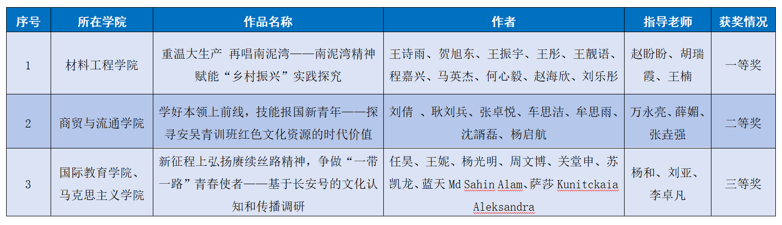 获奖作品:《新征程上弘扬赓续丝路精神,争做“一带一路”青春使者——基于长安号的文化认知和传播调研》(省赛三等奖)