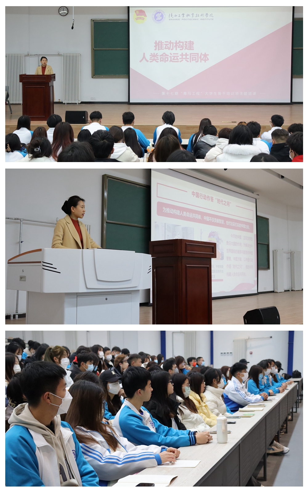 为深入学习贯彻习近平新时代中国特色社会主义思想,加强对青年团员的政治引领,凝聚奋进新征程的青春力量,进一步将团员和青年主题教育落到实处,结合我校第十七期青马工程培训课程安排,12月26日下午,校团委书记薛媚为本期青马工程学员讲授题为《推动构建人类命运共同体》的主题团课。