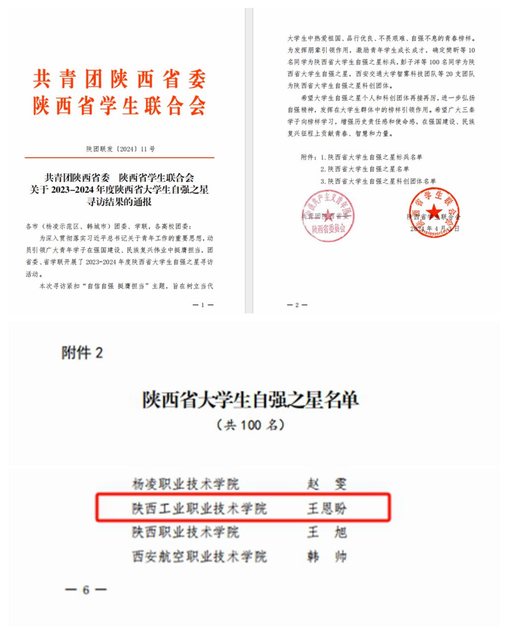 我校学子荣获2023-2024年度“陕西省大学生自强之星”荣誉称号