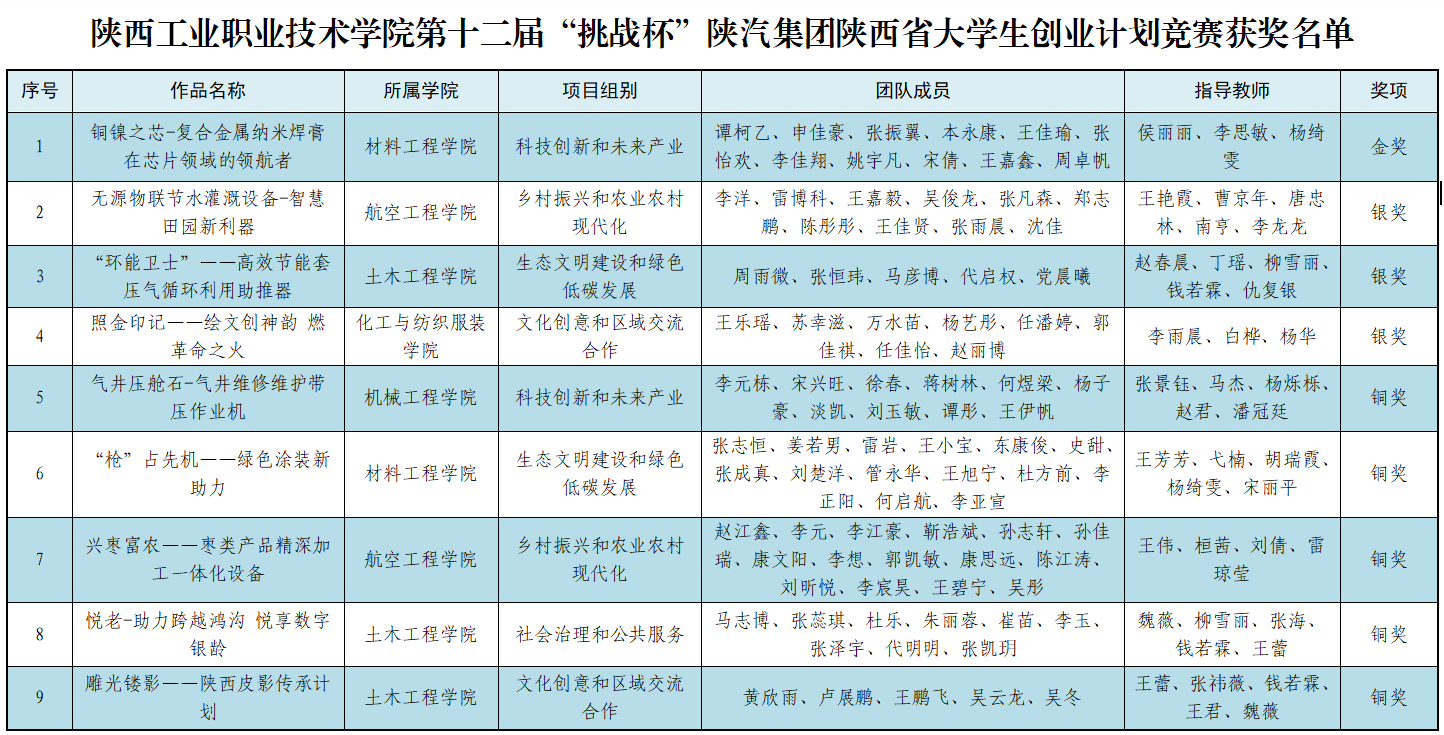 我校在第十二届“挑战杯”陕汽集团陕西省大学生创业计划竞赛中荣获佳绩