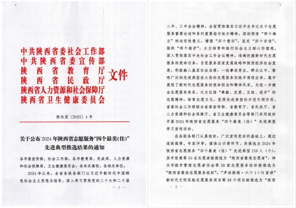 我校青年志愿者服务团队荣获陕西省最佳志愿者服务组织