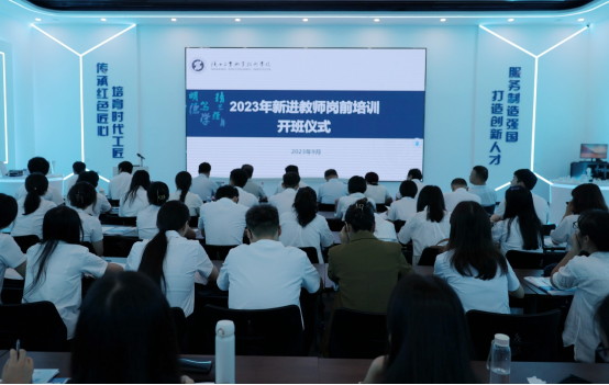 首先梅创社副校长代表学校向2023年加入陕西工院大家庭的41名新进教师表示衷心的祝贺。并对新进教师提出了四点希望:一是潜心思考,尽快实现身份的转变;二是勤修内功,尽快承担起工作职责;三是提升理论水准、掌握竞争力,在实践中深化职业教育知识;四是爱校荣校、乐于奉献,继承发扬优良传统,尽快融入陕西工院大家庭,成为学校事业发展的生力军。人事处处长殷锋社从培训时间、培训目标、培训内容及考核要求等几方面介绍了2023年新进教师岗前培训安排。随后,2021全国职业院校技能大赛教学能力比赛一等奖获得者信息工程学院数字媒体教研室教师赵润泽作为优秀青年教师代表进行了发言,她从身份转换、职业发展规划、实践初心信念等角度分享了从教初心与日常教学、赛教的心得体会。新进教师代表张育豪在发言中表达了能够成为陕西工院一员的激动心情,他号召全体新进教师磨砺教学本领,锻炼工程实践能力,努力提升个人综合素养,为学校教育教学事业持续高质量发展奉献自己的青春。
