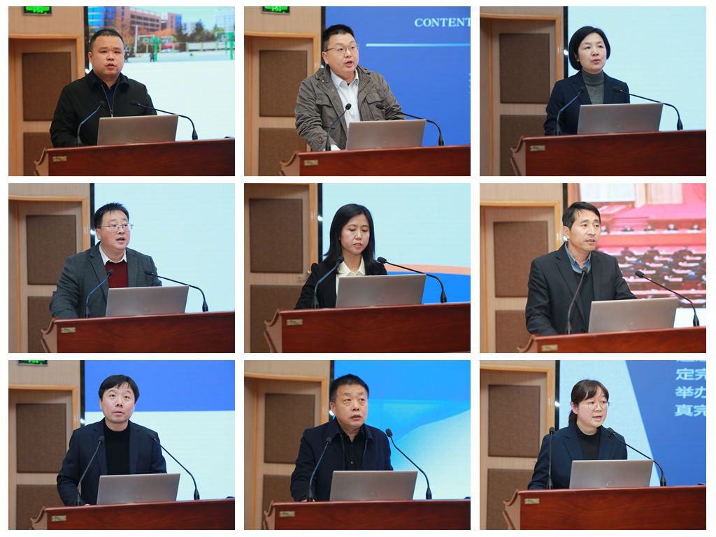 会议第二阶段聚焦学校内部教育教学工作的具体谋划与落实,教务处、材料工程学院、机械工程学院、化工与纺织服装学院、信息工程学院、土木工程学院、电气工程学院、公共课教学部负责人分别围绕职业本科教学高质量发展路径、专业布局优化、“十五五”期间职业本科专业发展规划、教材建设、人工智能课程建设、师资队伍建设、实训基地建设、公共课课程建设规划等方面进行了专题汇报。汇报立足实际、直面问题,展现了各教学单位对职业本科人才培养关键环节的深入思考与积极谋划。