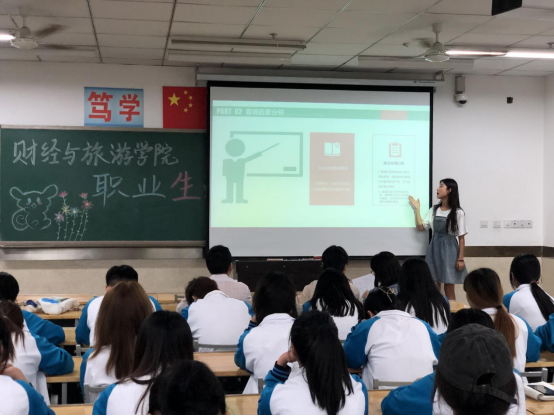 为了更好的普及职业生涯规划理念,引导、培养大学生形成职业规划意识,5月6日晚,财经与旅游学院举办了大学生职业生涯规划大赛。党总支副书记程建卫、学工办主任杜娟及辅导员老师出席比赛并担任评委。