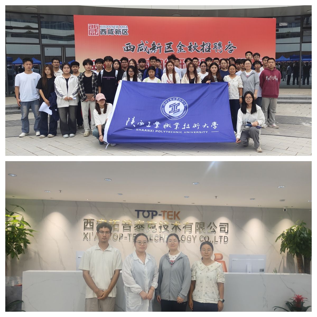 在招聘会现场,老师们带领毕业生积极应聘,了解毕业生的岗位意向和求职进展,针对性地进行就业指导。学子们积极投递简历,参与面试,达成了多个初步就业意向。他们表示,本次招聘会岗位种类丰富,提供了宝贵的实践机会,拓宽了职业选择范围。招聘会后,老师们就近走访了西安拓普泰克技术有限公司,由公司人力资源部主管带领参观车间并进行交流,达成合作意向,为毕业生们开拓了新的岗位。