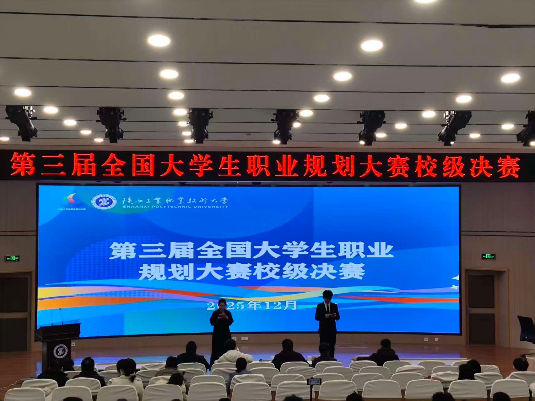 12月16日,我校第三届全国大学生职业规划大赛校级现场决赛在渭城校区学术会堂举行。本届大赛以“筑梦青春志在四方,规划启航职引未来”为主题,自启动以来吸引了全校各二级学院千余名学子踊跃参与。经过二级学院院赛、校级初赛、复赛的层层选拔,最终共有来自成长赛道与就业赛道的23名优秀选手脱颖而出,会师决赛现场,展开巅峰对决,副校长梅创社出席决赛。