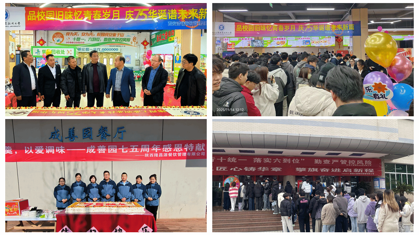 在建校75周年之际,为与全校师生共享荣耀与喜悦,我校后勤保障处精心策划,11月13、14日在经开与渭城两校区共同举办系列庆祝活动,用生日蛋糕与美食传递喜悦与暖意,为全体师生献上了一份校庆贺礼。