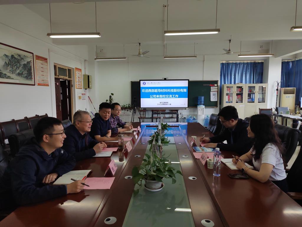讲座结束后,电气学院党总支书记韩伟、院长夏东盛、副院长董佳辉与西部超导材料科技股份有限公司组织人事部长李阳、人事主管张馨元就订单班人才培养、师资项目等情况开展深入交流。