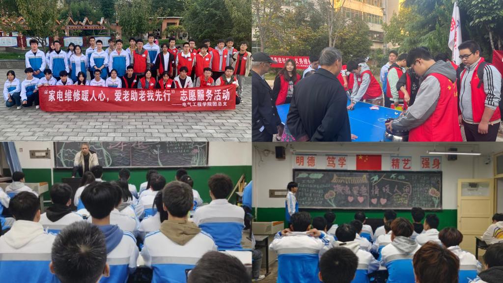 10月中下旬,电气工程学院开展了以各班为单位的“敬老爱老,情暖人间”主题班会、敬老爱老主题宣讲、为家里的老人写封信等系列活动。并前往家属院同乐园、华星社区等周边社区开展“家电维修暖人心,爱老助老我先行”义务家电维修活动,同时向老年群体积极宣传家庭安全用电常识。