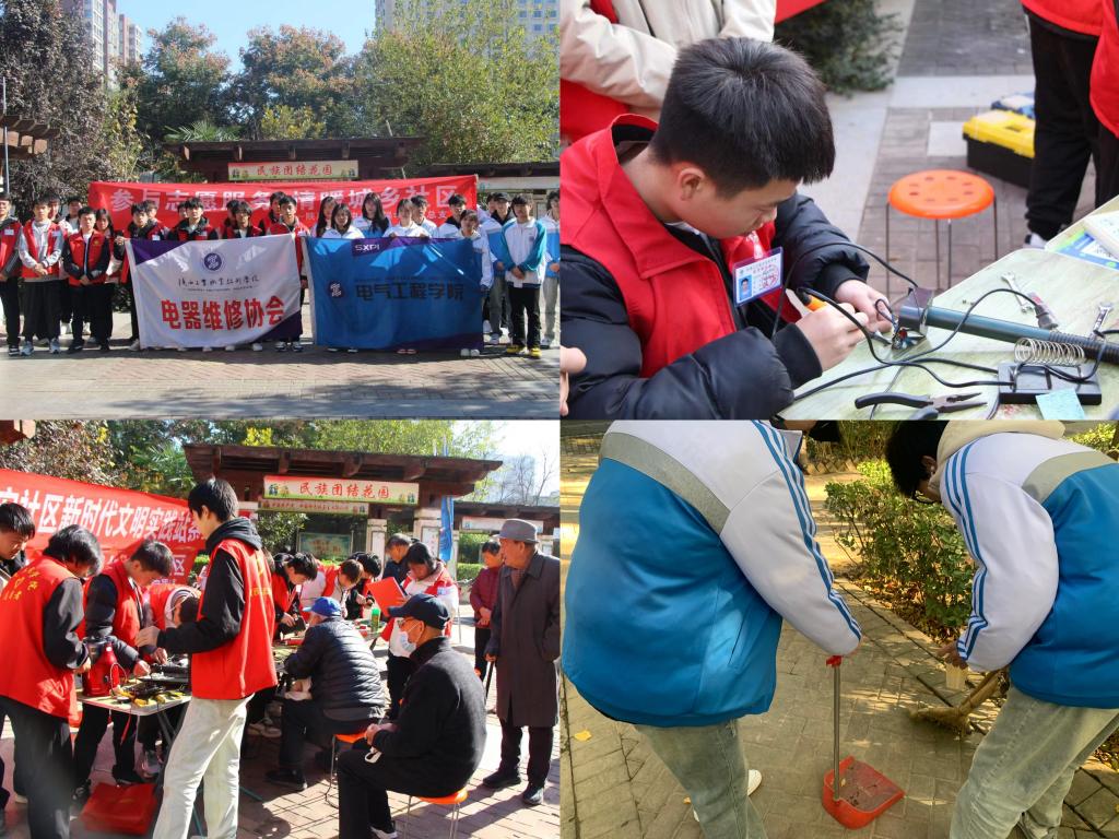电气学院团总支在推进团员和青年主题教育过程中,坚持与电气专业紧密结合,根据专业特色开展系列活动,为社区居民义务维修电器一百余件。此外,团员和青年们还为社区进行了义务打扫卫生服务,清扫居民楼20栋,清理草坪600余平米,深受居民的好评。