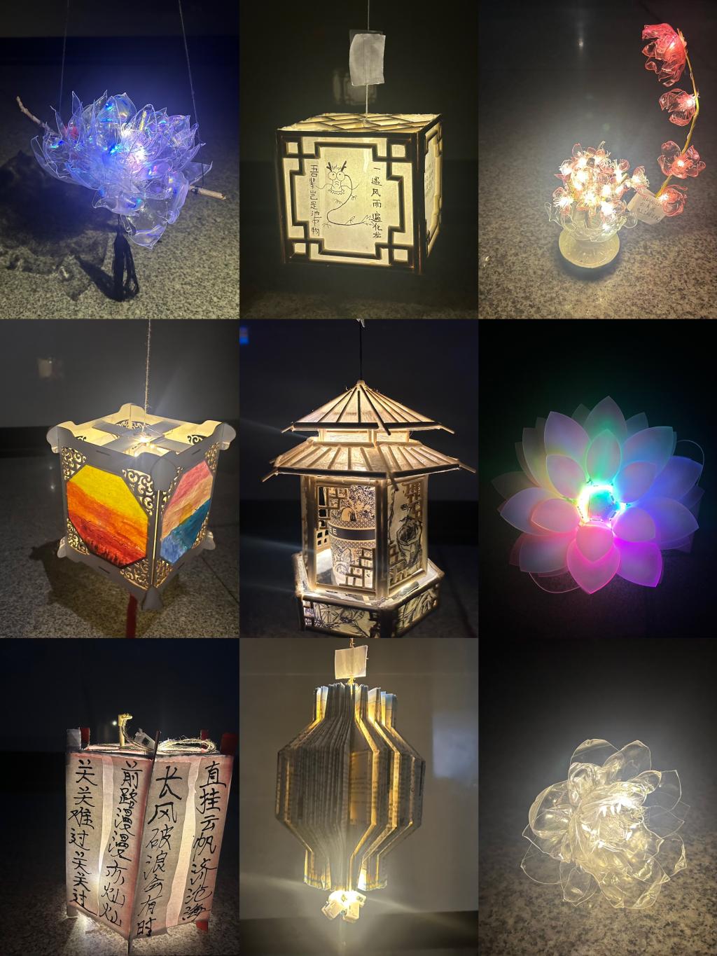 本次活动历时六周,同学们积极报名,认真准备并在规定时间内上交作品。大家紧扣“花灯”、“寄情”、“团圆”、“创新”、“美观”的主题,利用一次性筷子、一次性纸杯、奶茶杯、塑料瓶、废旧书籍等材料,运用剪纸、折纸、绘画、书法等各种表现形式,制作出一件件创意十足、独具匠心的手工灯笼。更有同学将24字社会主义核心价值观、五常之道——“仁、义、礼、智、信”融入其中,饱含对中华优秀传统文化的传承与发扬。