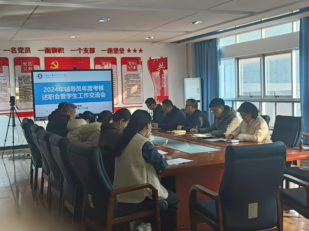 为切实加强学院辅导员队伍建设,激励辅导员干事创业热情,助力学院学工队伍全面成长,12月26日,电气工程学院在行知楼A506党员活动室召开2024年辅导员年度考核述职会暨学生工作总结交流会。电气工程学院党总支书记刘其兵、副院长董佳辉、教学办主任张维、实训中心主任张艳、全体辅导员参加了会议。
