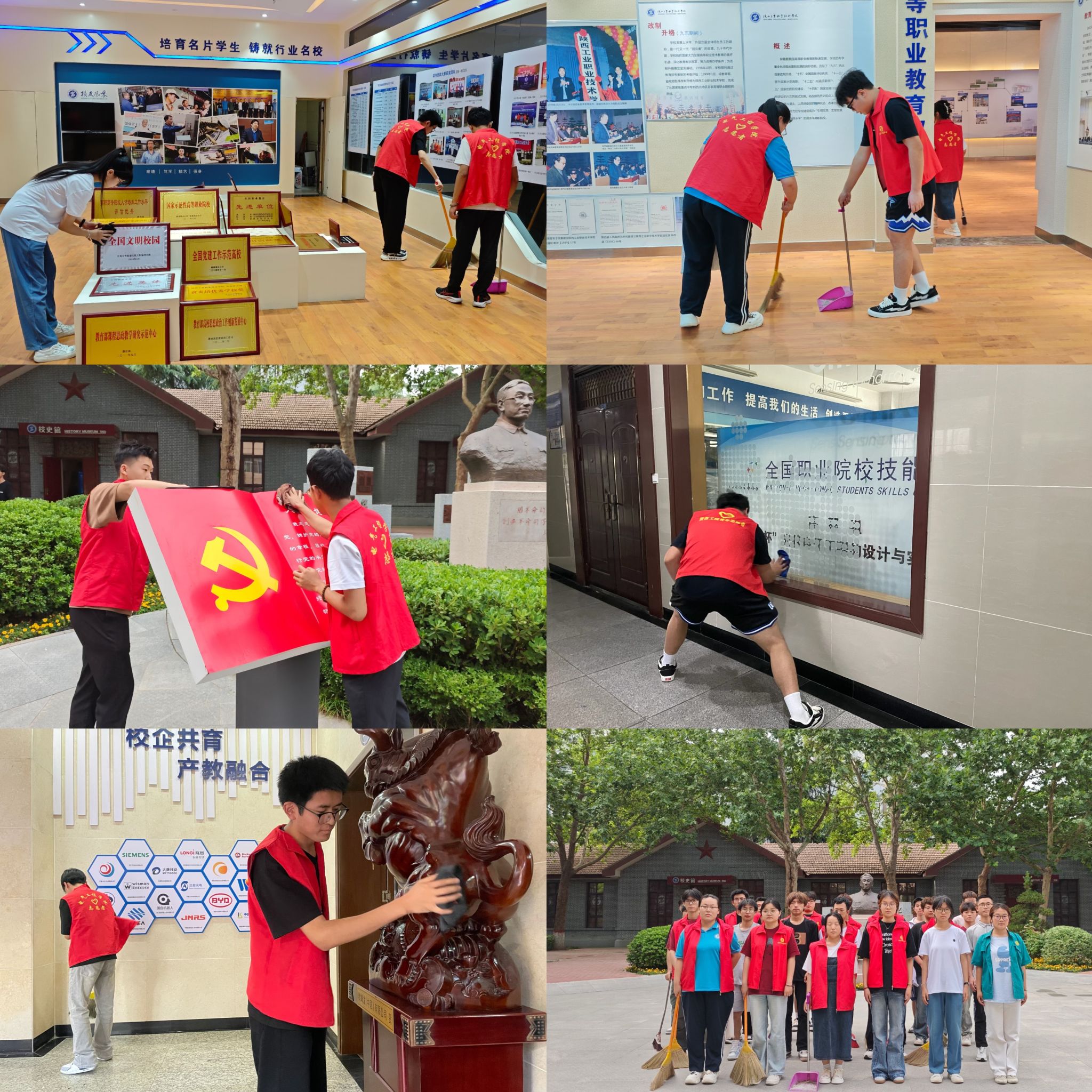 追溯历史脉络,传承红色基因。校史馆承载着学校厚重的文脉与荣光。在这里,志愿者们怀揣敬畏之心,分组对校史馆展柜、地面、角落等区域进行细致清洁,擦拭玻璃展柜上的浮尘,清理角落积灰,确保每一处展陈都以最佳状态呈现历史风貌。在庄严肃穆的王达成红色文化广场,志愿者们一丝不苟地对镌刻着铮铮誓言的入党誓词碑进行了精心的清洁与擦拭,并对广场进行了清扫,志愿者们纷纷表示,在劳动中深刻体会到校史文化传承的重要性,擦拭历史尘埃的过程,正是我们青年党员擦拭初心、坚定信仰的过程,将以实际行动守护校园文化阵地。