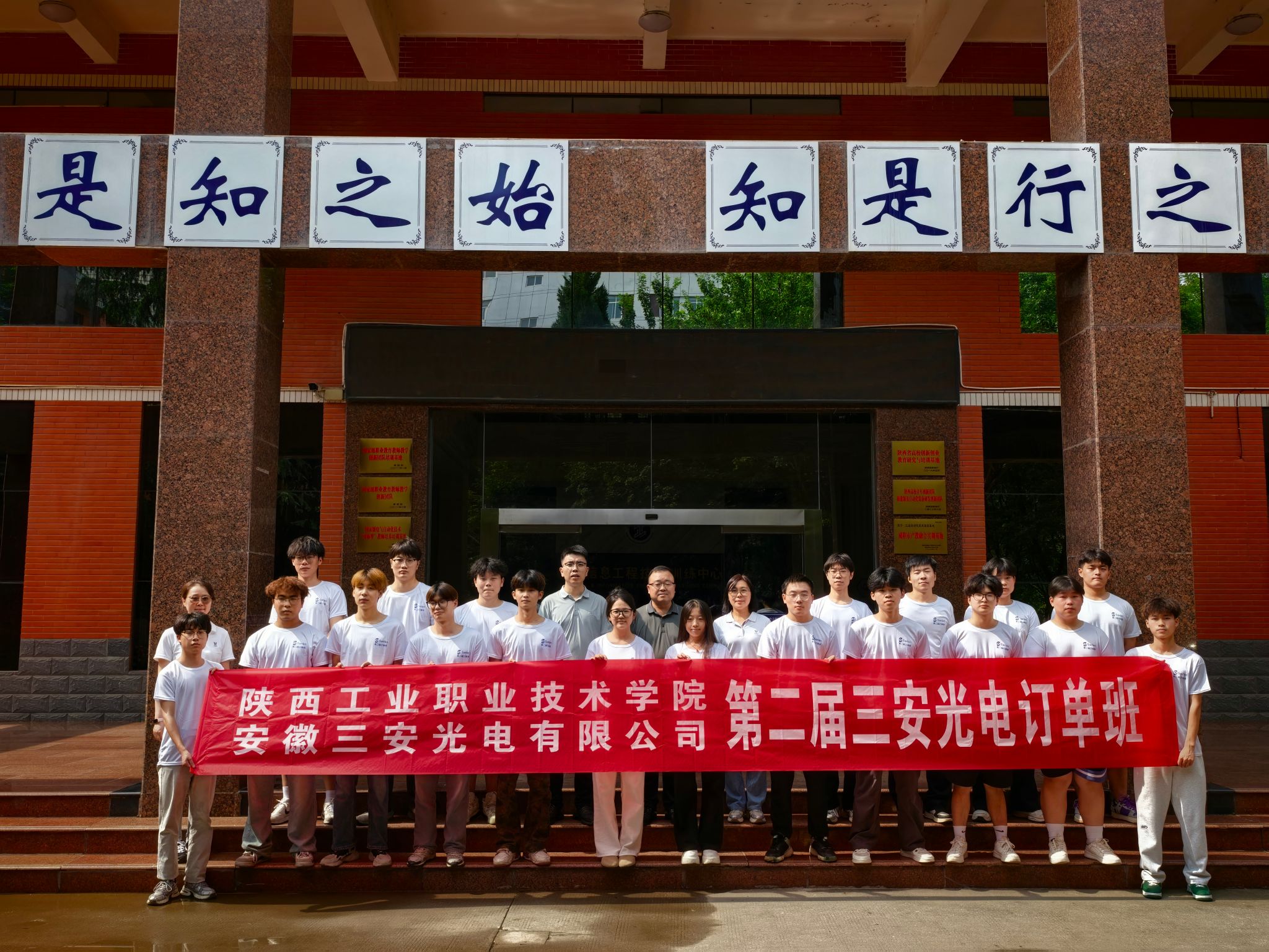开班仪式上,刘其兵对安徽三安光电有限公司的大力支持表示感谢,并对同学们提出三点希望:一是思想高度重视,以”准员工“的身份进行专业学习;二是珍惜良好机会,借助订单班这个好的平台成就美好未来;三是谨记学院院训,自强不息不断锤炼职业素养。勉励同学们怀揣梦想去努力奋斗,提升自己的职业技能,使自己成长为新时代大国工匠。