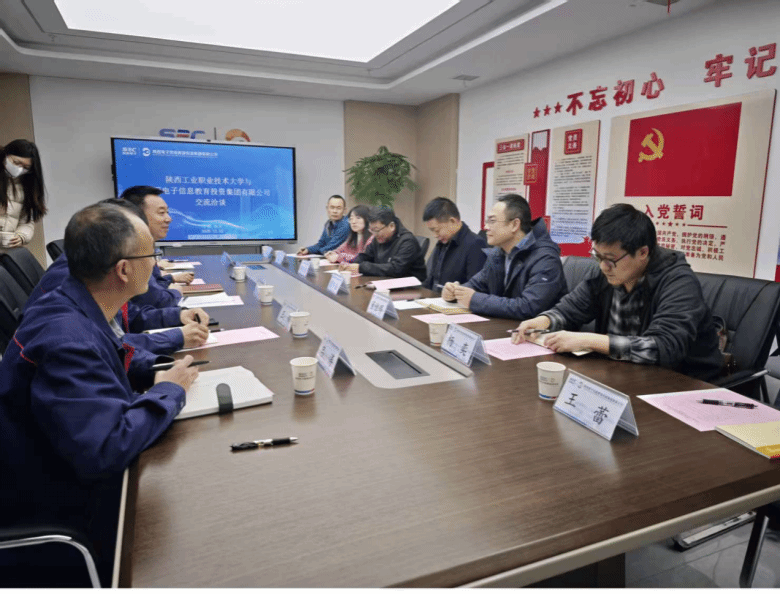 为深化产教融合、校企合作,12月2日下午,电气工程学院院长夏东盛、副院长董佳辉、就业处副处长杨延波带领教师代表一行7人,赴陕西电子信息教育投资集团有限公司开展交流座谈与调研活动。