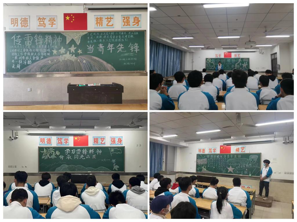 各班在团支书的带领下,学习习近平总书记关于学习雷锋的重要论述,强调在新征程上,要深刻把握雷锋精神的时代内涵,让雷锋精神在新时代绽放更加璀璨的光芒,为全面建设社会主义现代化国家、全面推进中华民族伟大复兴凝聚强大力量。班长就“什么是新时代雷锋精神”向大家发出提问,同学们表示,作为青年人,要在时代的变迁下将“螺丝钉精神”发扬在各行各业,“把有限的生命投入到无限的为人民服务之中去”就是对雷锋精神的传承。最后,由学委向大家讲述了全国道德模范与身边好人的优秀事迹,呼吁大家走出宿舍,将雷锋精神践于行并化为志愿服务传承下去。此次主题团日活动在热烈的气氛中圆满结束。