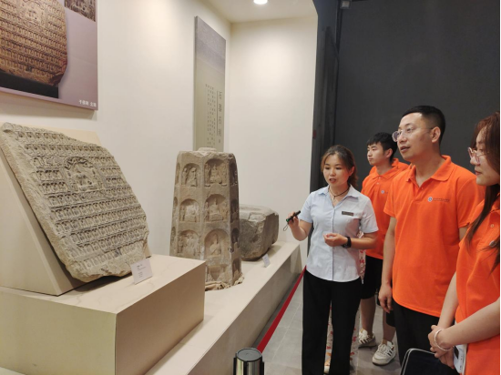 来到石刻展区,工作人员向实践团队员展示了北魏时期的千佛碑,上面雕刻的佛像一个个历经时间的洗礼仍旧能清晰的看出当时雕刻处出的图案,体现出古时候工匠的钻研精神和技艺的精湛,以及当时工匠的智慧。