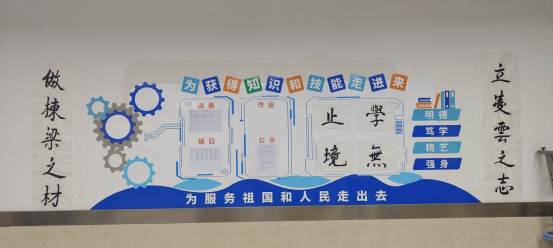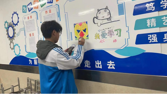 经过各班同学们的精心装扮,教室地面干净,公物摆放整齐,门窗干净明亮,绿植勃勃生机。各班文化墙更是设计精心、图文丰富、色彩鲜艳、寓意深刻,小小的文化墙经同学之手呈现出巨大的文创效果,形成了“班班有特色,处处显文化”的育人环境,也打造了窗明几净的教室环境。