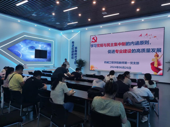 6月26日下午,机械工程学院教师第一党支部在先进制造技术工程中心展厅开展支部书记讲党课活动。会议由教师第一党支部书记张文亭同志主持,教师第一支部的全体党员参加了此次会议。