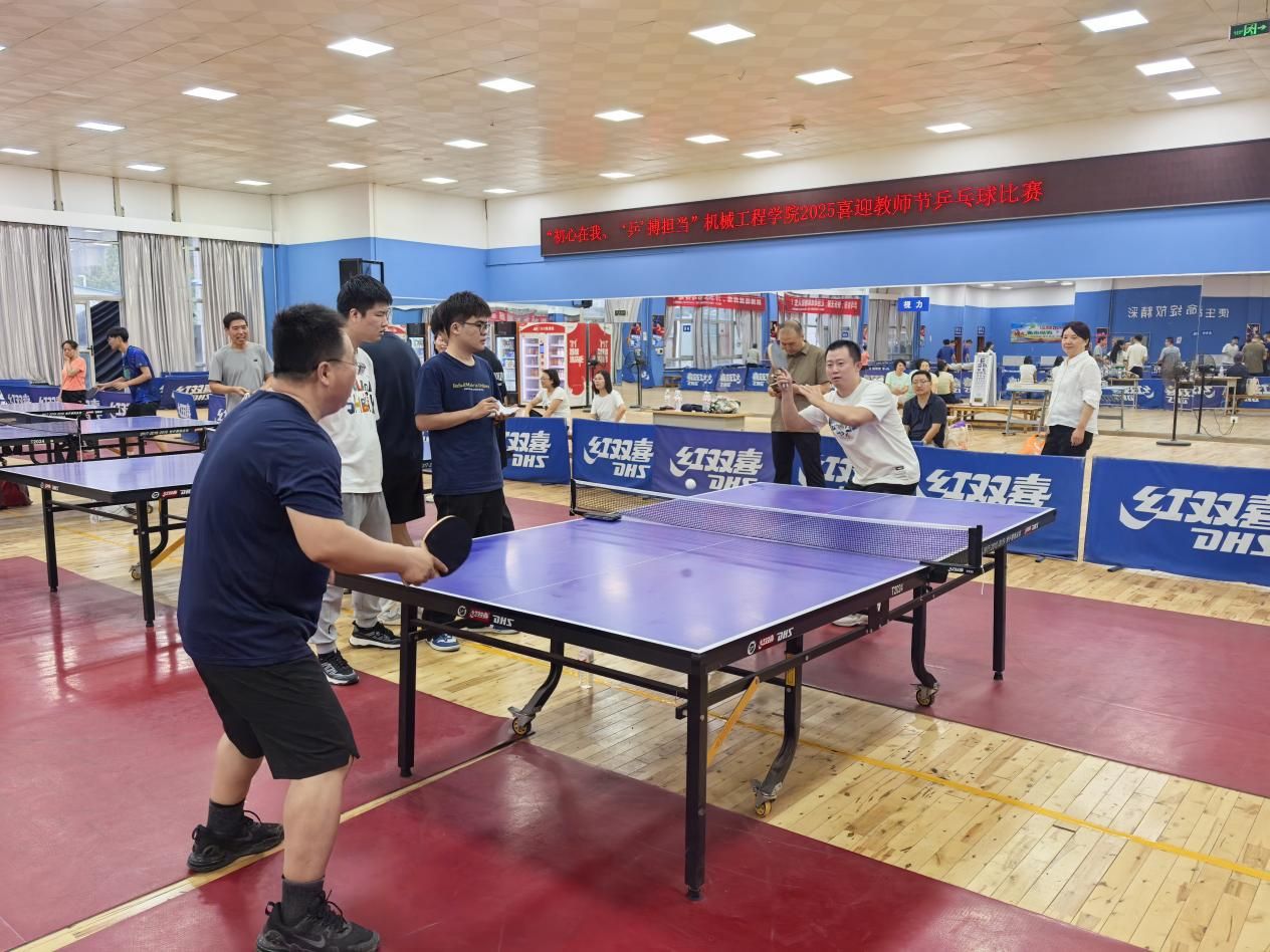 9月10日下午,机械工程学院分会举办“初心在我、‘乒’搏担当”喜迎教师节乒乓球赛活动,本次比赛共有8支队伍40名教职工参赛,采取多轮淘汰赛,比赛现场气氛热烈,参赛教职工精神饱满,身手矫健;赛场边,喝彩声、欢笑声不绝于耳,展现了乐游棋牌教职工昂扬向上、团结奋进的精神风貌。经过激烈的角逐,最终评选出一等奖1名,二等奖2名,三等奖3名。