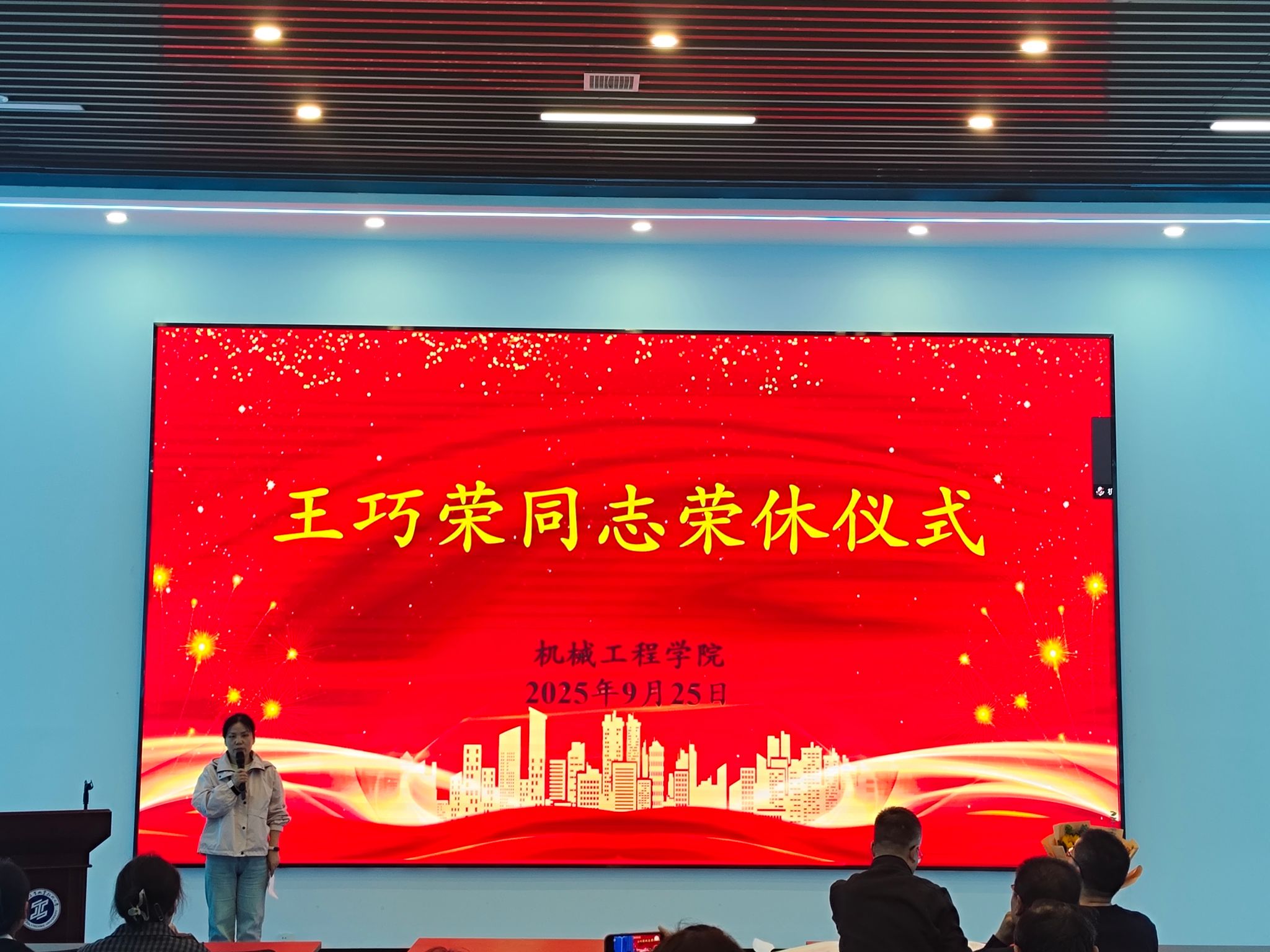 9月25日下午,机械工程学院在先进制造技术工程中心展厅为2025年下半年退休教师王巧荣老师举行温馨而隆重的荣休仪式。机械工程学院全体教职工齐聚一堂,向为学院发展辛勤奉献的王巧荣老师表达崇高的敬意和美好的祝福。