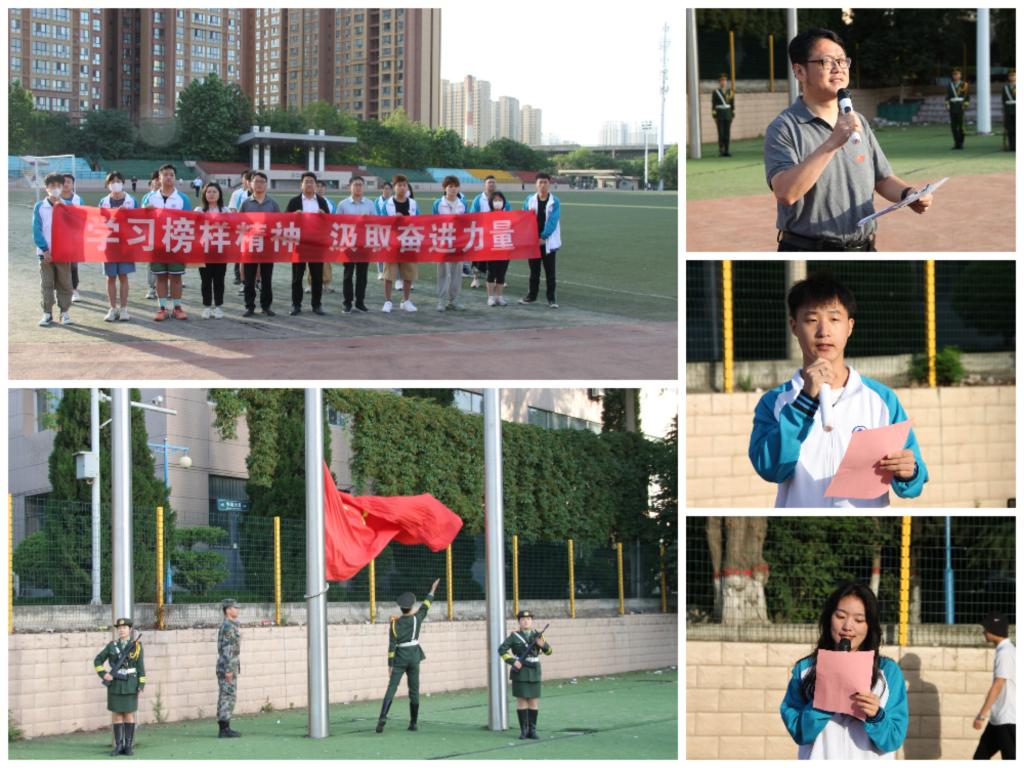 为了大力弘扬榜样精神,汲取榜样力量,树立学习榜样、争当先进的良好风尚,结合当前学校疫情防控工作原则,5月30日清晨,材料工程学院在学校操场国旗下组织开展“国旗下的成长”主题教育活动,本次活动的主题是“学习榜样精神,汲取奋进力量”。材料工程学院党总支书记郝平、校团委书记赵双军、学工办全体辅导员以及全体学生干部共计30余人参加此次活动。