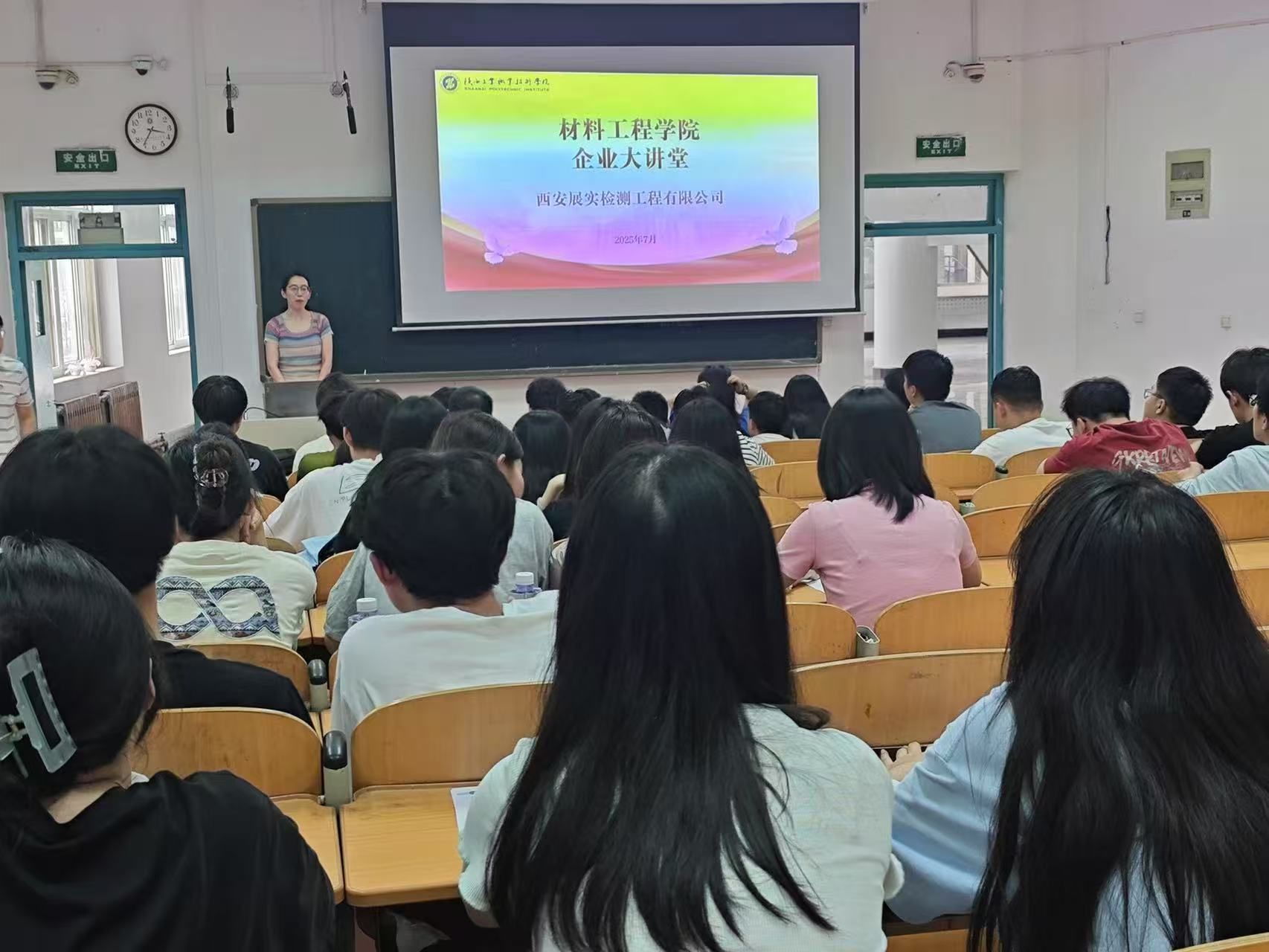 活动伊始,郑老师系统阐述了西安展实检测工程有限公司在工程材料检测、无损探伤等领域的技术优势,通过可视化数据展示了企业在高端装备检测、新能源材料分析等领域的创新成果。针对学生关注的职业发展路径,重点剖析了材料性能测试、检测数据处理等核心岗位的能力要求,详细阐释了“科学严谨、创新务实”的企业文化内核及“导师带徒”特色培养体系。在互动环节,同学们围绕实习内容设计、职业资格认证、技术岗晋升通道等热点问题积极提问,企业专家团队结合行业动态与用人标准逐一解答,现场问答交锋不断,智慧火花迸发。