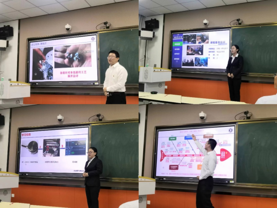 首先,李晓鹏介绍了参与本次观摩活动的领导和老师以及活动的主要流程。随后,由王艳霞、秦洪浪团队与梁晓哲、王彦诚团队的四名教师分别依托《传感器与测试技术》和《高速切削与五轴加工》两门课程,分别进行10分钟说课和15分钟课堂教学展示。两组团队从课程基本信息、教学团队基本情况、课程思政总体设计、课程思政研究实践情况、课程评价与成效、课程特色与创新和教学反思等方面进行了教学展示。在教学展示过程中,教师精神饱满,语言流畅,能巧妙地将思政教育目标融入教学过程,展现了良好的专业水平和职业素养。