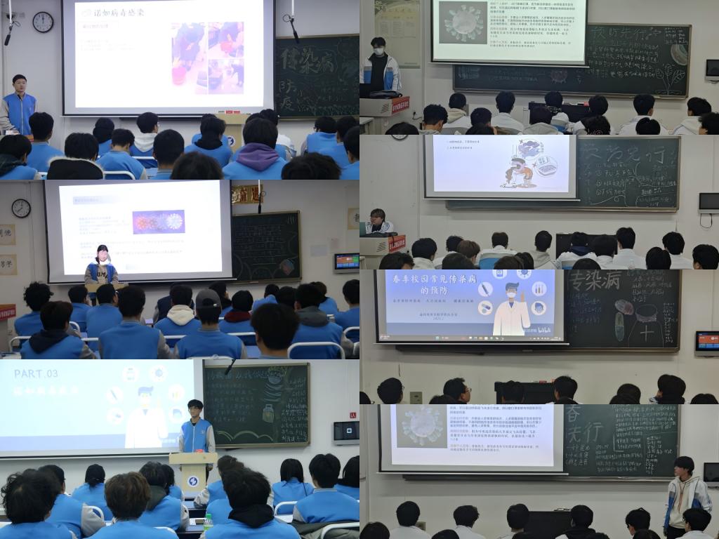 聚焦春季健康,共筑校园防线。春季气温多变、病菌活跃,流感、诺如病毒感染性腹泻、肺结核等疾病易发。班会上,志愿者合附件内容,系统宣读了春季常见传染病的传播途径、症状及科学预防措施,并组织学生观看科普视频《春季校园常见传染病的预防》。视频以生动案例和实用建议,强调了接种疫苗、保持卫生习惯、佩戴口罩、通风消毒等防控要点。此外,班会还针对诺如病毒的高发特性,重点提示饮食卫生与呕吐物规范处理的重要性;针对肺结核,呼吁学生关注异常症状并及时就医筛查。同时,引导学生讨论如何通过合理膳食、适度运动、规律作息提升免疫力,缓解春季情绪波动。