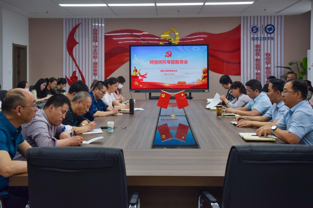 为深入学习贯彻党的二十大精神,认真落实学习贯彻习近平新时代中国特色社会主义思想主题教育,进一步加强师风建设、筑牢师德底线。5月15日,信息工程学院在崇理楼C801会议室召开了师德师风专题教育会,全体教师参加,会议由党总支书记闫军主持。