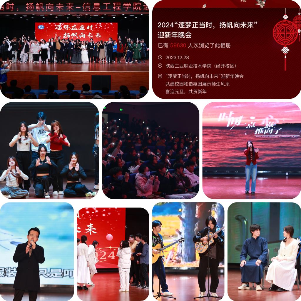 凯歌高奏辞旧岁,豪情满怀迎新年。12月28日晚,信息工程学院“逐梦正当时 扬帆向未来”迎新年晚会在经开校区图文报告厅二举行。信息工程学院党总支副书记郭新玲及全院师生代表300余人共同观看了此次演出。同时,线上视频直播5000余人观看,图片直播6万余人次浏览观看。