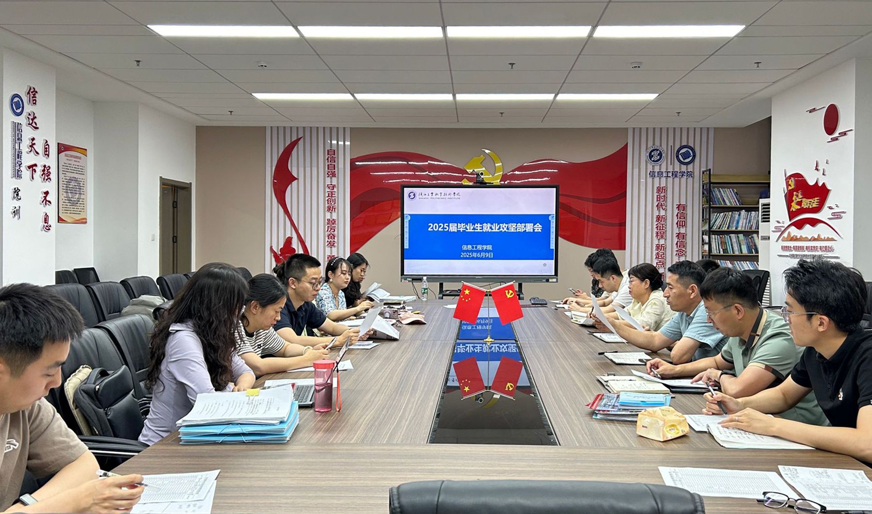 为深入贯彻落实学校就业工作部署,扎实推进2025届毕业生高质量就业,6月9日下午,信息学院在崇理C801召开2025届毕业生就业攻坚部署会。信息学院党总支书记王伟、院长白国政、党总支副书记郭新玲、毕业班辅导员及班主任参加会议,会议由学工办主任赵松主持。