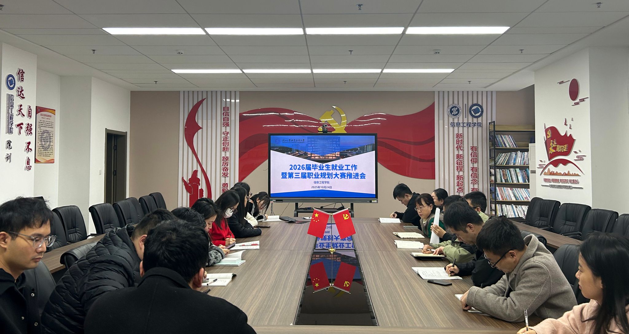 为切实做好2026届毕业生就业工作,引导学生把握就业机遇,高质量顺畅就业,10月24日,信息工程学院在崇理楼C801会议室组织召开了2026届毕业生就业工作暨第三届职规赛推进会,党总支书记王伟、党总支副书记郭新玲、全体辅导员及毕业班班主任参会,学工办主任赵松主持会议。