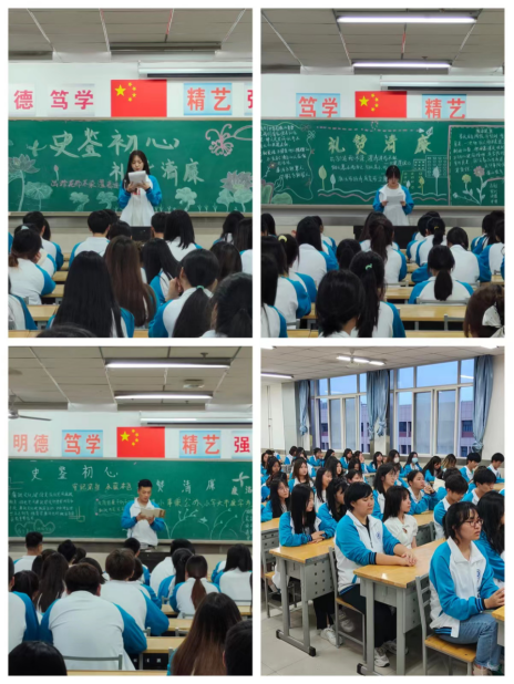 活动中,首先由各班团支书发表了自身对廉洁的理解和认识,并带领同学们学习了廉洁的相关知识,认识到廉洁是自律修身,是勤俭节约,更是出淤泥而不染。随后,同学们纷纷上台分享范仲淹、海瑞、周恩来总理的廉洁故事,用的廉洁事迹强调节俭奉公是中华民族的传统美德。最后,同学们还以如今的一些落马官员作为反面教材,告诫大家要廉洁修身,端正入党动机。