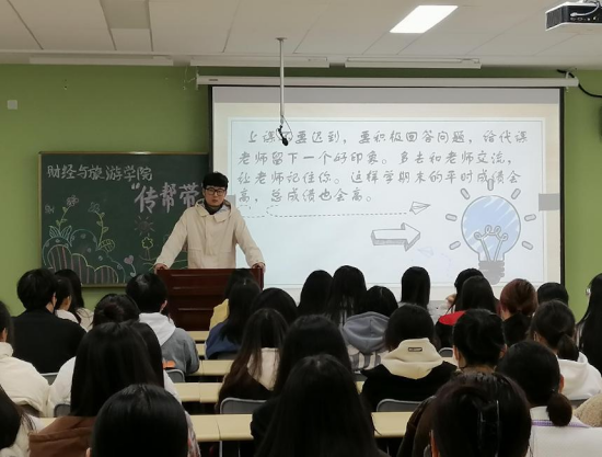为了帮助2022级新生更好的适应大学学习生活,11月10日下午4时,财经与旅游学院在经开校区崇理楼E新生晚自习教室,举行了“学习经验传帮带,财经学子韵芳华”学习经验交流会。本次交流会,由2021级、2020级国家奖学金、励志奖学金获奖者共71位优秀学生代表,分别走进2022级15个新生班级进行学习经验分享,会议由财经学院团总支学生会组织,2022级新生辅导员、班主任主持。