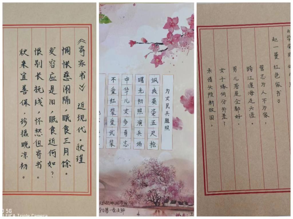 此次活动共计收到60余份家书与画像。同学们认真研读每一封家书,细细写下一笔一划,深刻领会蕴含在一封封家书文字中的革命大义,接受革命传统教育与红色文化的浸润。一封封尘封良久的书信带领同学们穿越时空,回到血与火的年代,缅怀革命先烈,涵养家国情怀。在巾帼英雄们满载家国柔情与革命豪情写就的家书中,感悟党的初心使命,追寻党的精神谱系,传承党的红色基因,赓续奋进力量!
