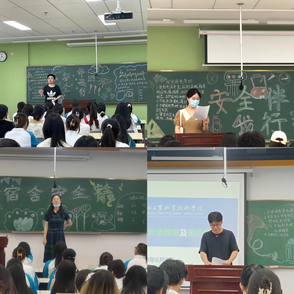 在班会上,班主任老师以及班长从公寓内务卫生、公寓安全保障和宿舍违纪行为这三个方面进行详细说明和讲解,并参照我校学生公寓管理规定,重点在用电安全、防火安全、生活安全以及标准化宿舍等方面进行了详细讲解。