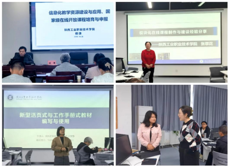 实施模块化教学,创新培养模式。全国精品在线课主持人杨谦、国家级精品在线课程负责人张翠花教授分别对国家级在线开放课程培育、申报、制作与运营经验进行了分享。全国教师教学能力大赛二等奖团队成员赵玉静和杨萌老师分别从新型活页式教材的编写与使用、大赛示范课两方面展示了模块化教学的模式与实施,赢得学员们一致好评。