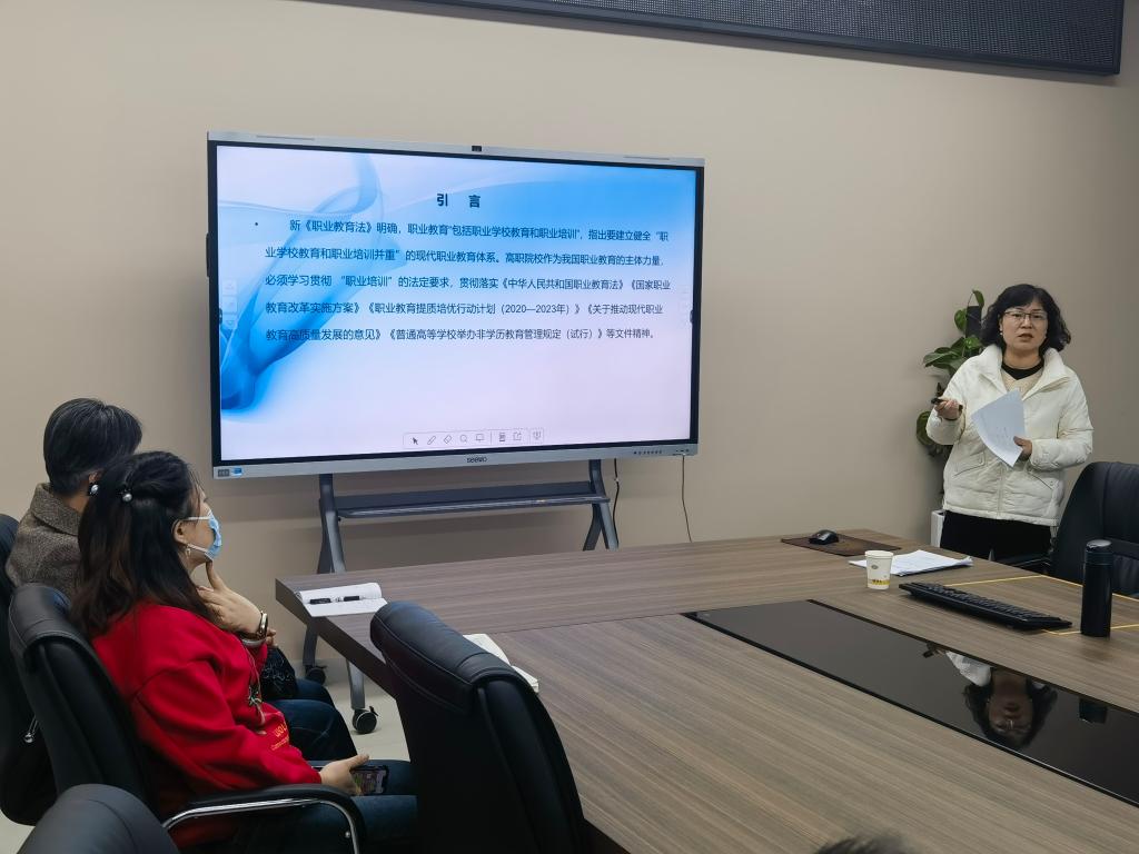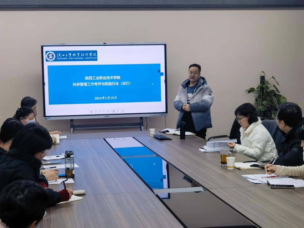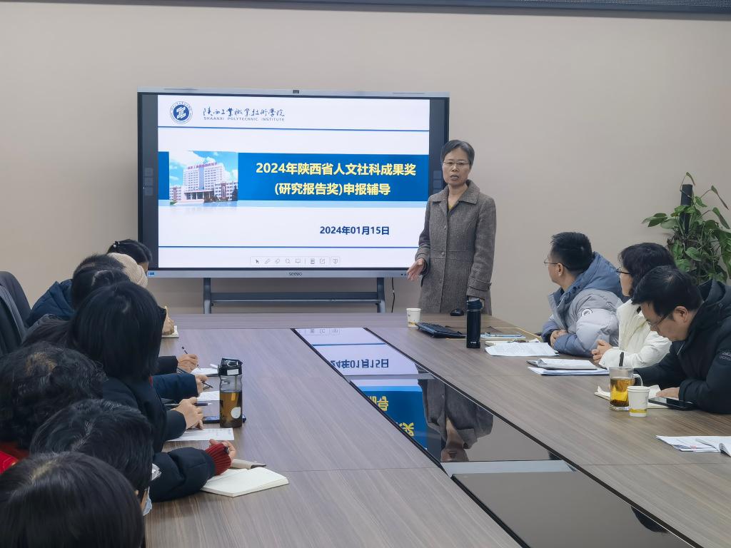 会议还以人文社科奖申报、科研项目申报与管理、社会培训工作开展为主题进行了研讨交流。陈晶教授从申报要求及基础、结题后准备、申报所需材料、提交资料注意事项、成果应用、申报书撰写等6个方面详细介绍了陕西省人文社科成果奖的申报流程及注意事项;石斌博士从科研量化积分和奖励细则方面重点解讲读了《陕西工业职业技术学院科研管理工作考评与奖励办法》;实训中心主任张艳带领大家学习《陕西工业职业技术学院社会培训工作管理办法(试行)》规定的二级学院社会培训工作职责、培训项目实施前准备、培训工作奖励办法等。