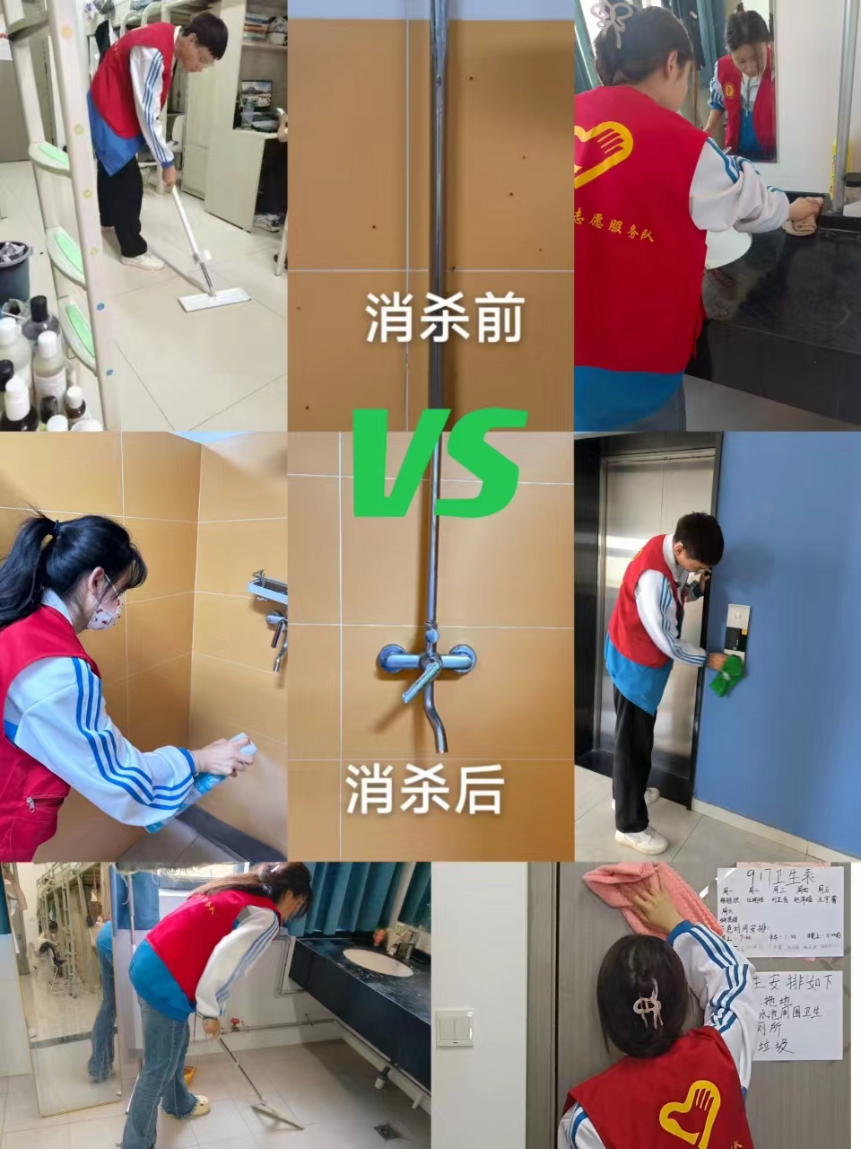 在清扫过程中,学生们分工合作,有的负责扫地拖地,有的负责清理垃圾桶和擦拭公共设施,有的则负责着重清扫每层公共浴室,清除墙壁蚊蝇虫卵。他们认真细致地打扫每一个角落,不放过任何一个卫生死角。他们的努力不仅让宿舍公共区域焕然一新,也赢得了同学们的一致好评。