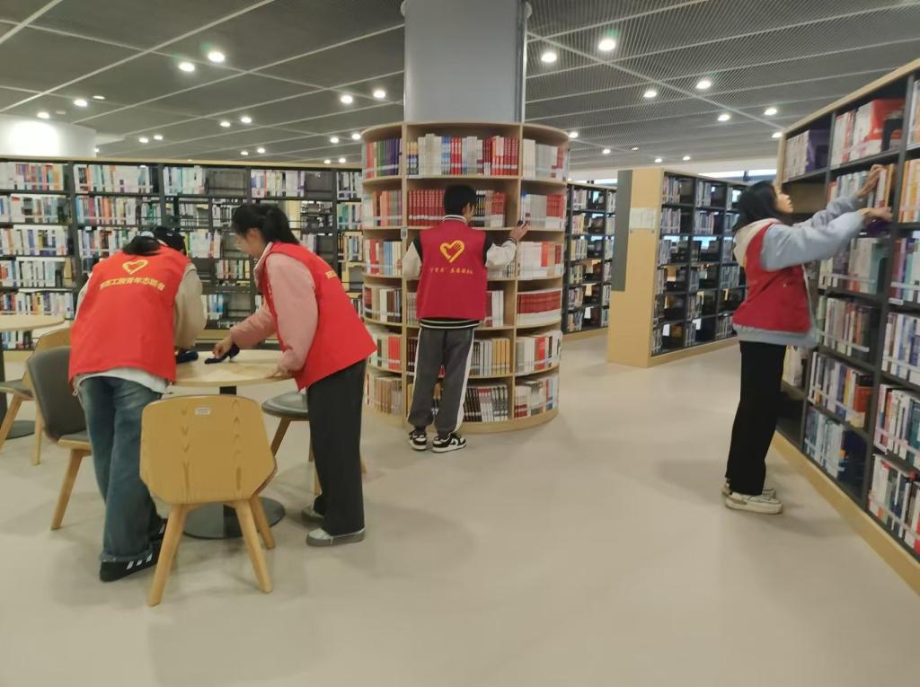 活动中,一部分志愿者们携带专业清洁工具,针对书架、书柜、桌椅等卫生死角的地方进行打扫,力求干净到位;另一部分成员根据图书分类,对书架上的书进行核对、搬运,将杂乱的书籍摆放整齐有序,确保每一本书都有自己的“家”。在大家的共同努力下,图书馆焕然一新。整个活动过程中,全员参与、协同合作、相互配合、仔细擦拭、认真打扫整理,展现出了较高的团队协作精神和奉献精神。