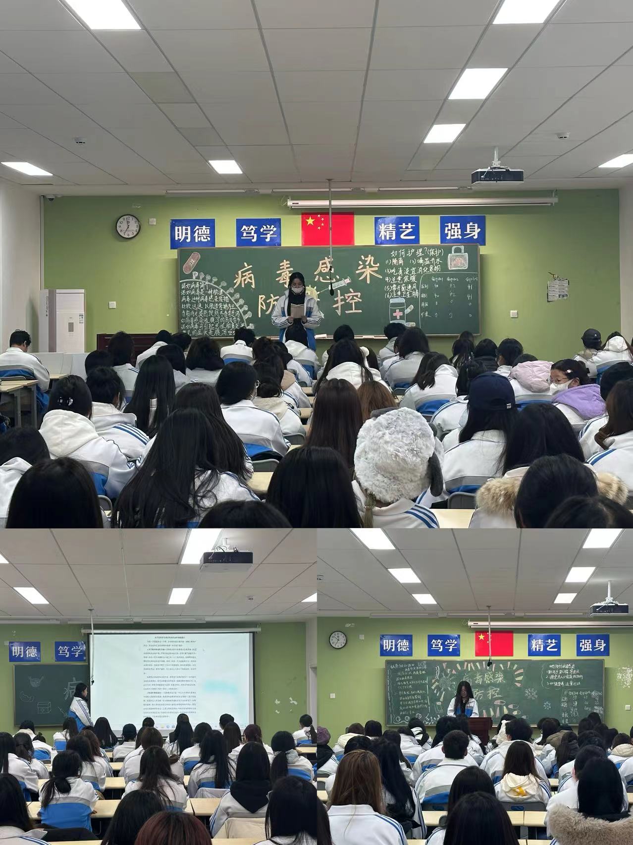 班会伊始,班主任们通过PPT和视频的形式,向学生详细介绍了诺如病毒的流行病学特点、传播途径以及易发场所。诺如病毒是一种RNA病毒,具有极强的变异能力,每隔2-3年便可能出现新的变异株。其感染剂量低、潜伏期短、排毒时间长,且免疫保护时间短,极易造成反复感染。因此,加强学生的防护意识尤为重要。