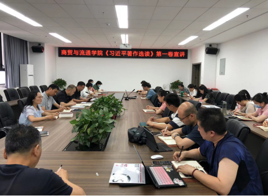 为深入开展学习贯彻习近平新时代中国特色社会主义思想主题教育,根据学校关于开展《习近平著作选读》第一卷、第二卷宣讲工作的通知要求,6月12日下午,商贸与流通学院党总支在经开校区崇理楼六楼会议室开展《习近平著作选读》第一卷、第二卷宣讲工作,会议由商贸与流通学院党总支副书记侯涛主持,全体教师党员参加了会议。