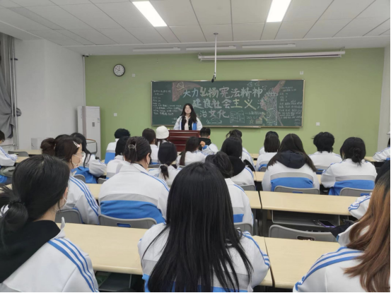 活动首先由各班团支书领读了人民日报文章《弘扬宪法精神培育法治文化(人民论坛)》,引导同学们认识到只有用法治文化浸润心田、滋养社会,才能让法治成为每一个人的行为准则和生活方式。紧接着各班学生观看了视频《时政微纪录|宪法宣誓!郑重的誓言人民的选择》、《中国宪法的诞生与发展历程》、《[新思想引领新征程]谱写新时代中国宪法实践新篇章》进行具体学习,每位同学用心体会宪法的庄严与神圣,了解宪法赋予我们每个人的责任与义务。最后同学们进行了讨论交流,大家纷纷表示自己会积极行动起来,从自己做起,从身边小事做起,自觉做到学法、知法、守法、护法,为实现中华民族伟大复兴的中国梦贡献青春力量。